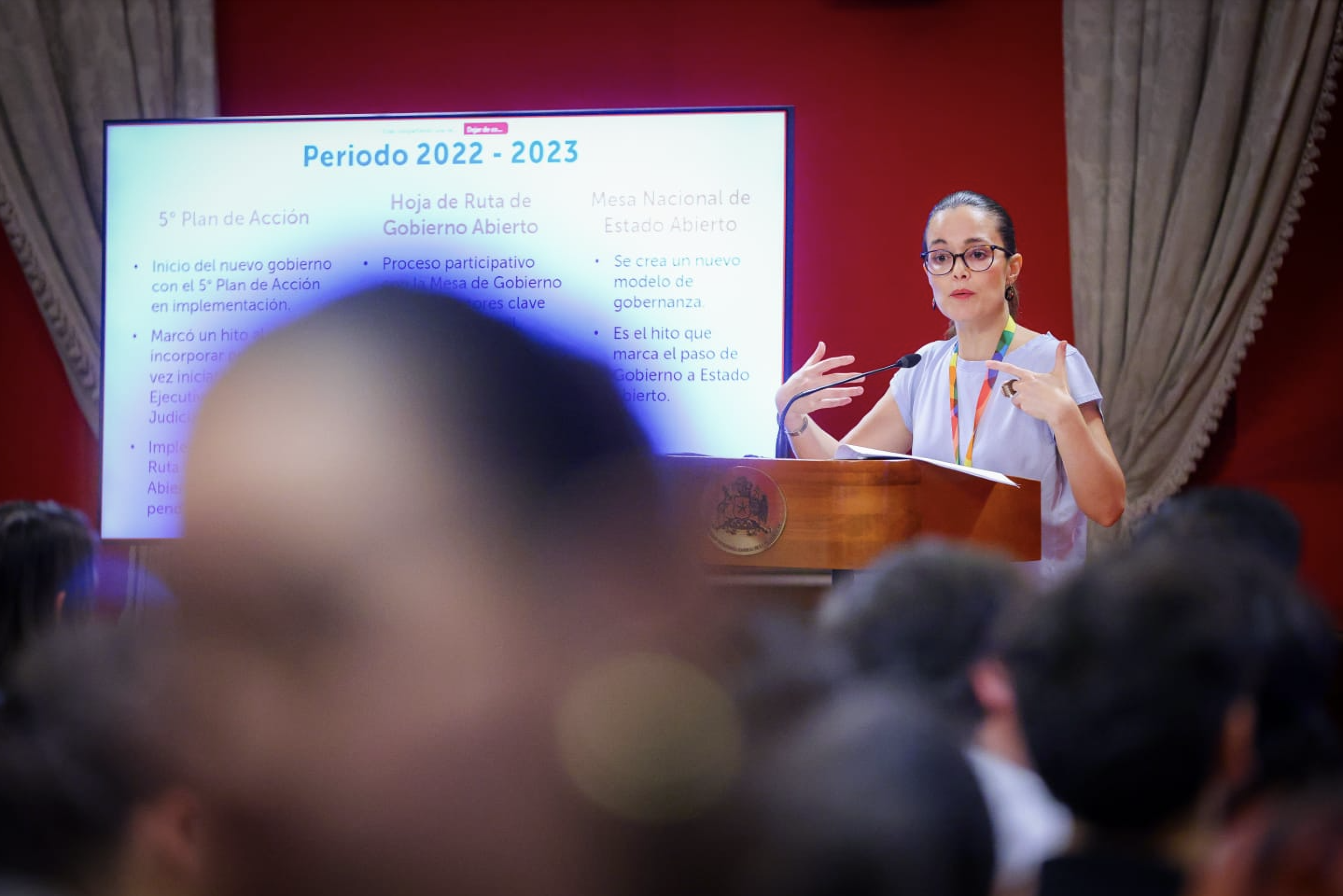 La actividad fue encabezada por la ministra secretaria general de la Presidencia, Macarena Lobos, junto al subsecretario y presidente de la Mesa Nacional de Estado Abierto, Nicolás Facuse, y contó con la participación de la secretaria ejecutiva de la Comisión de Integridad Pública y Transparencia, Valeria Lübbert.
